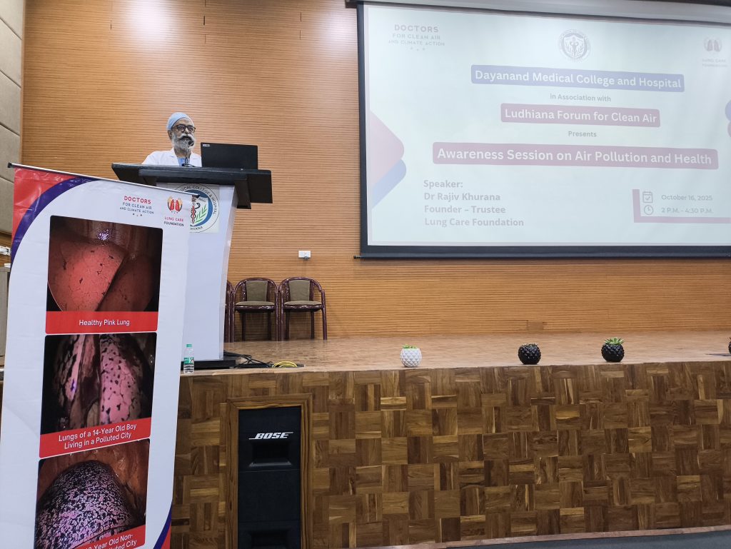 An Awareness and Training Session on Air Pollution and Health was organized by the Ludhiana Forum for Clean Air at Dayanand Medical College & Hospital (DMC&H), Ludhiana, on 16 October 2025. The primary objective of the session was to enhance awareness about air pollution and its serious health implications, while actively engaging young medical and healthcare students as future advocates for clean air, climate action, and public health protection.