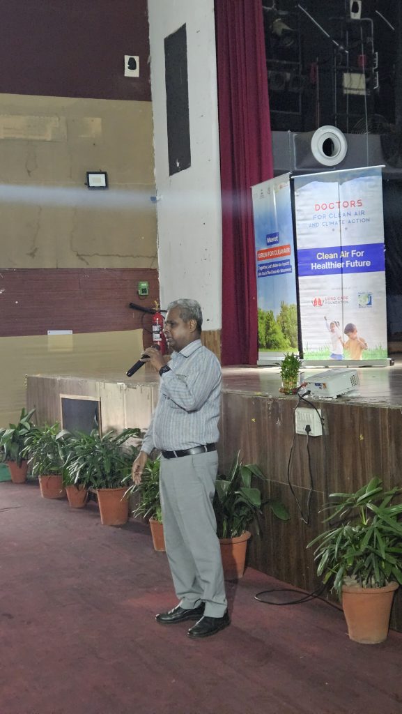 The Meerut Forum for Clean Air (MFFCA) organized a training session on “Effect of Air Pollution on Human Health” at Lala Lajpat Rai Memorial Medical College, Meerut, on August 5, 2025. Facilitated by Anshika Kansal, the session engaged around 200 participants, including medical, nursing, and paramedical students, along with faculty members.