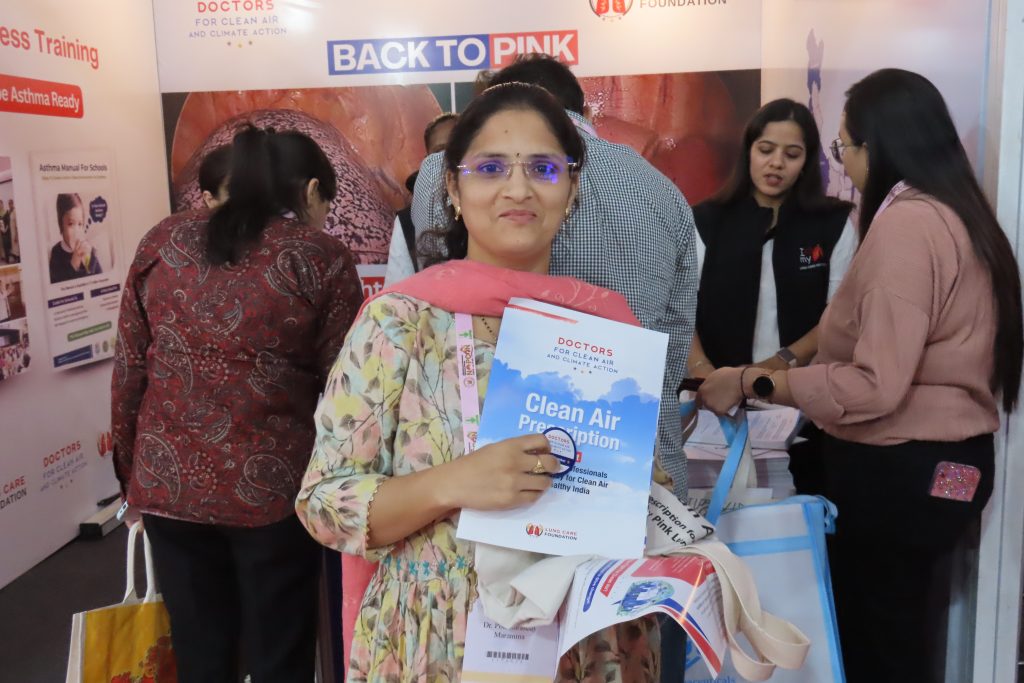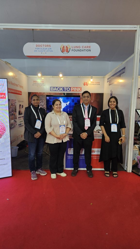 In addition, DFCA set up an information stall at the conference, which served as a space for interaction with delegates, dissemination of evidence-based resources on air pollution and health, and conversations around the role of doctors in advancing clean air action. The stall received steady engagement from conference participants, including pulmonologists, physicians, and trainees, resulting in over 500 doctors being onboarded into the DFCA network.