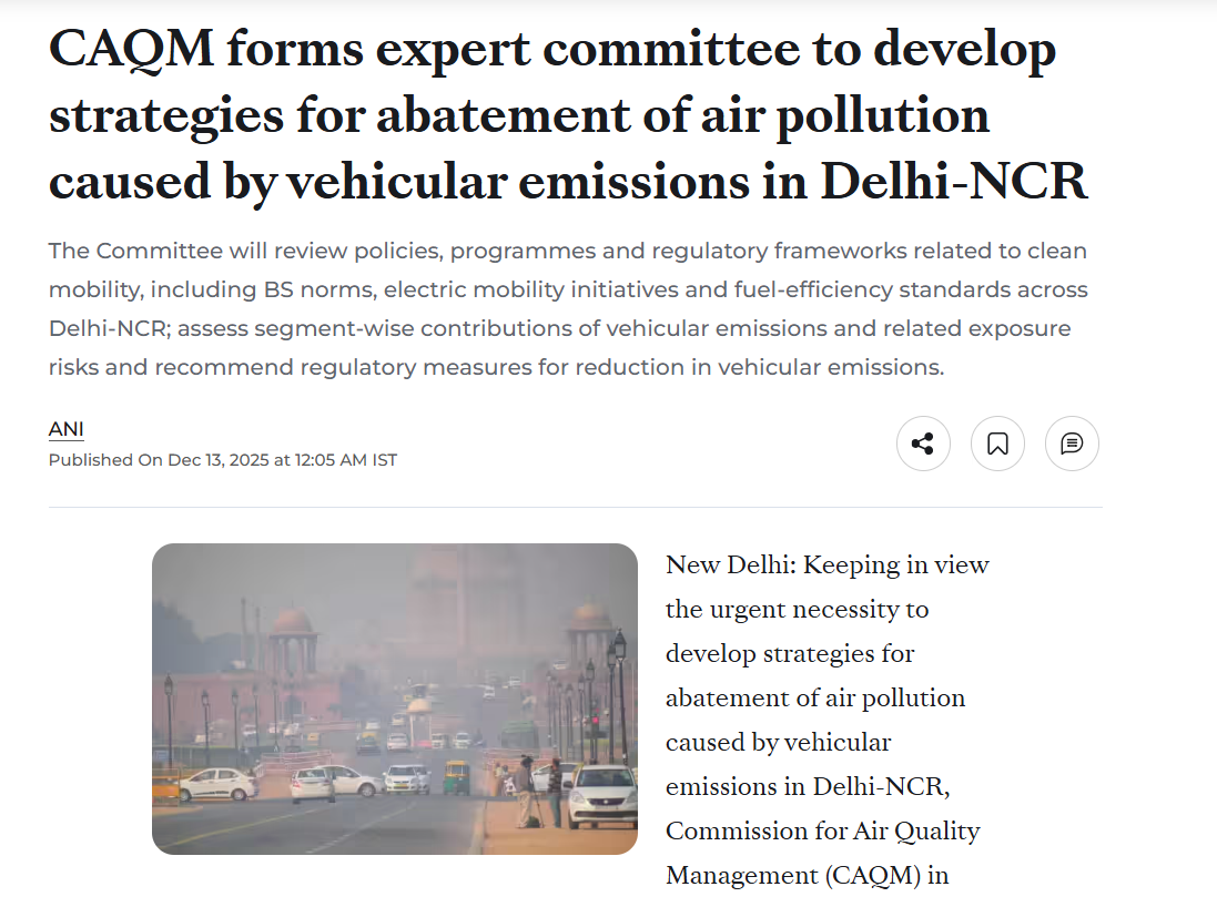 DFCA Engagement Recognised: Dr. Arvind Kumar Nominated to CAQM Expert Committee on Vehicular Emissions